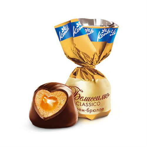 Конфеты Белиссимо классико крем-брюле производства компании "Конти" можно купить оптом с доставкой по Москве, Подмосковью и ЦФО. Низкая цена обусловлена отсутствием посредников при наличии прямого договора с производителем. Все актуальные сертификаты в наличии. Минимальный заказ: 1 коробка