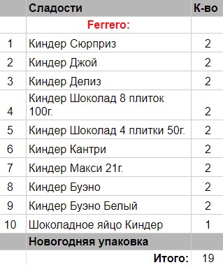 Кол-во сладостей: 19 шт.