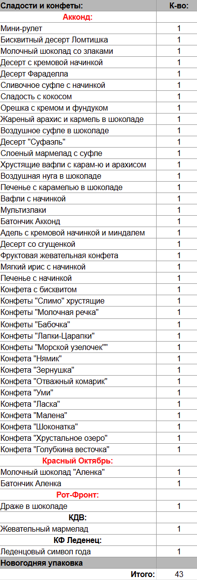 Интернет-магазин сладких новогодних подарков работает от производителя напрямую, за счет чего мы убираем посредников и снижаем цены на детские новогодние подарки. Кроме того, наша логистика позволяет доставить заказ практически в любой город за наш счет. Все цены на сладкие подарки актуальны