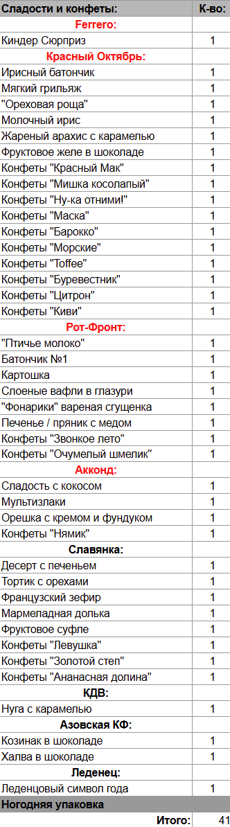 Кол-во сладостей: 41 шт.